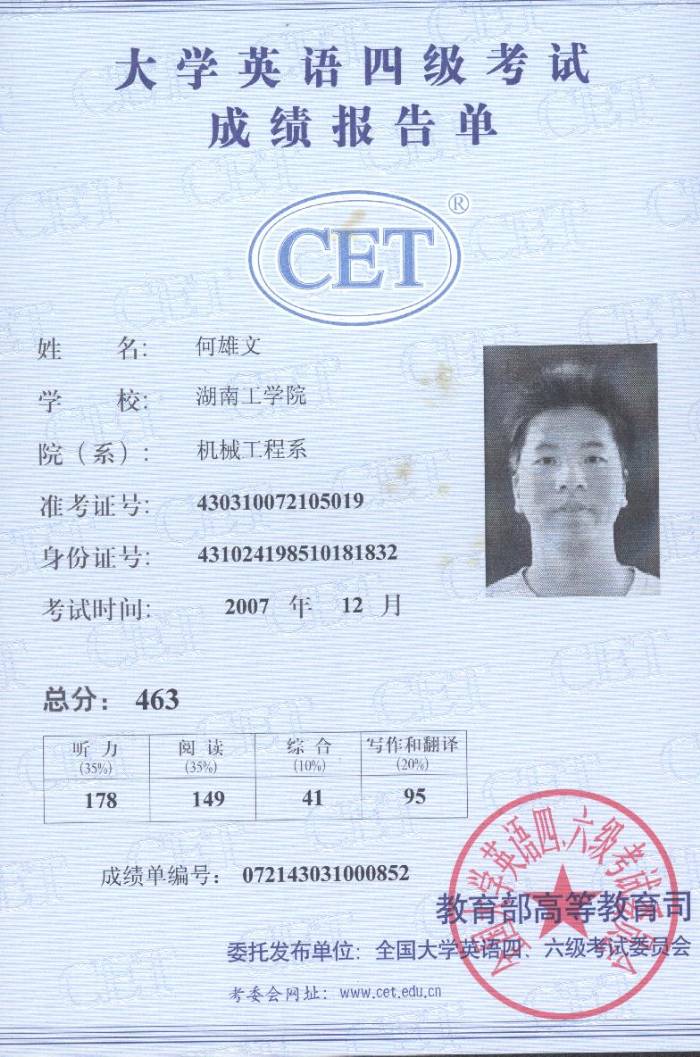 | 姓 名: | 何雄文 | 性 別: | 男 |